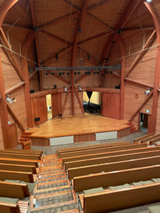 「ホールこだま」全て木造りの素敵なホールでした。